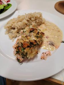 Atlantischer Lachs, mit Kruste überbacken an Wildreis